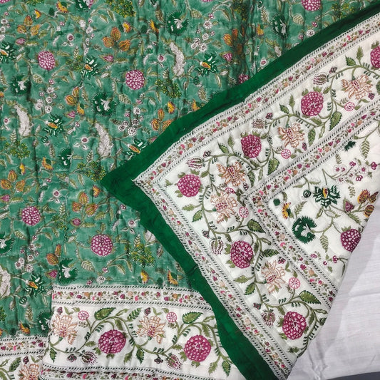 'Shabnam Green'- 100% Soft Cotton Quilt/Blanket- Handcrafted in Jaipur