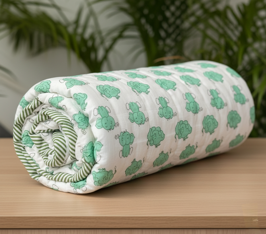 'Hop & Nap'- Reversible Baby Organic Quilt|Blanket