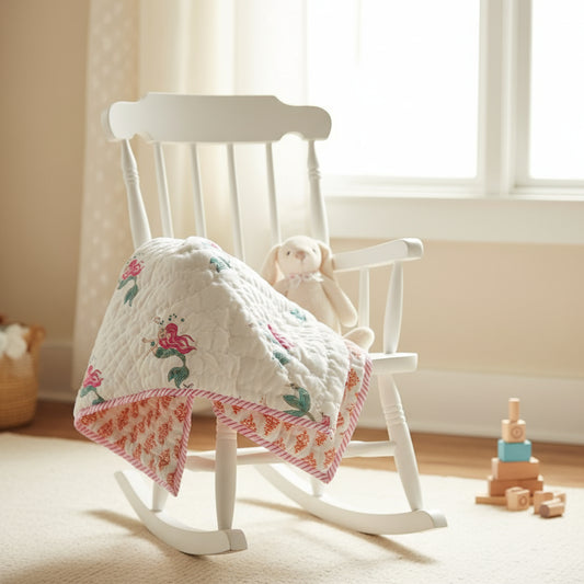'The Pink Rabbit'- Reversible Baby Organic Quilt|Blanket