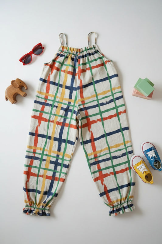 Vibrant Rainbow Colored Cotton Jumpsuit for Kids – Breathable Summer Playwear