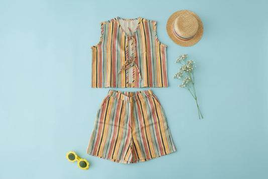 'Color Me Kind' is a joyful spring–summer collection for kids and adults, inspired by rainbows, stripes, checks, and stars. Designed for everyday comfort and easy dressing, these pieces celebrate color, connection, and the simple power of kindness. Worn, shared, and passed on!