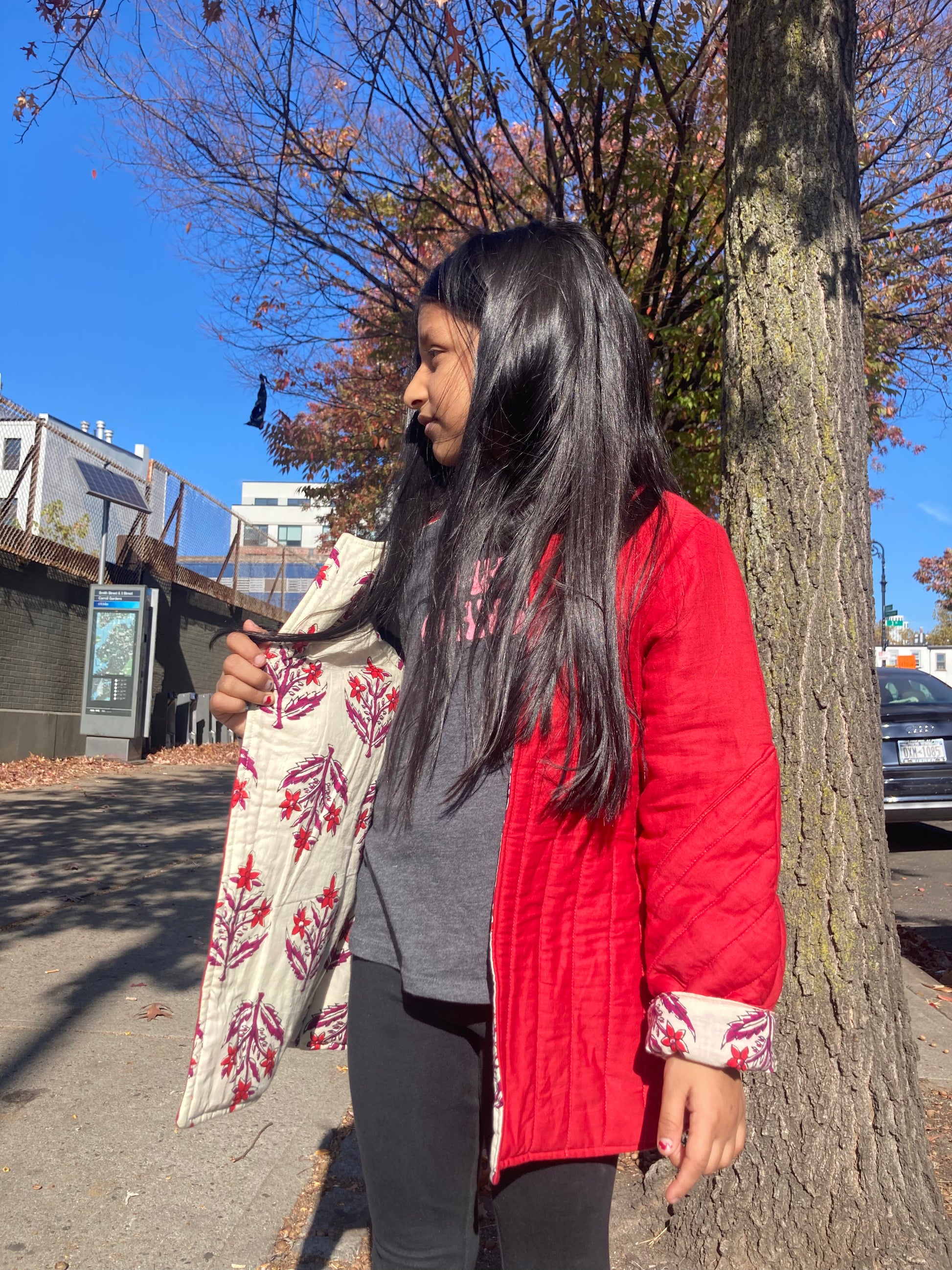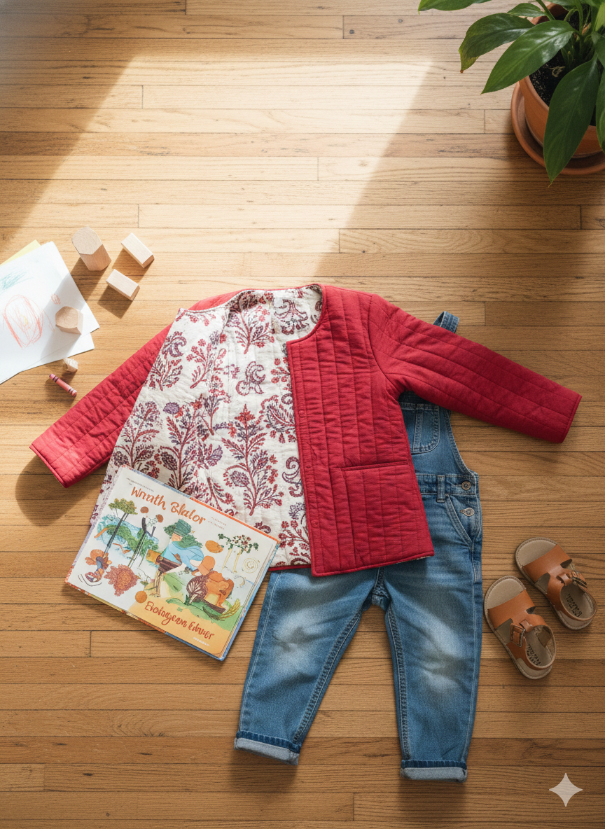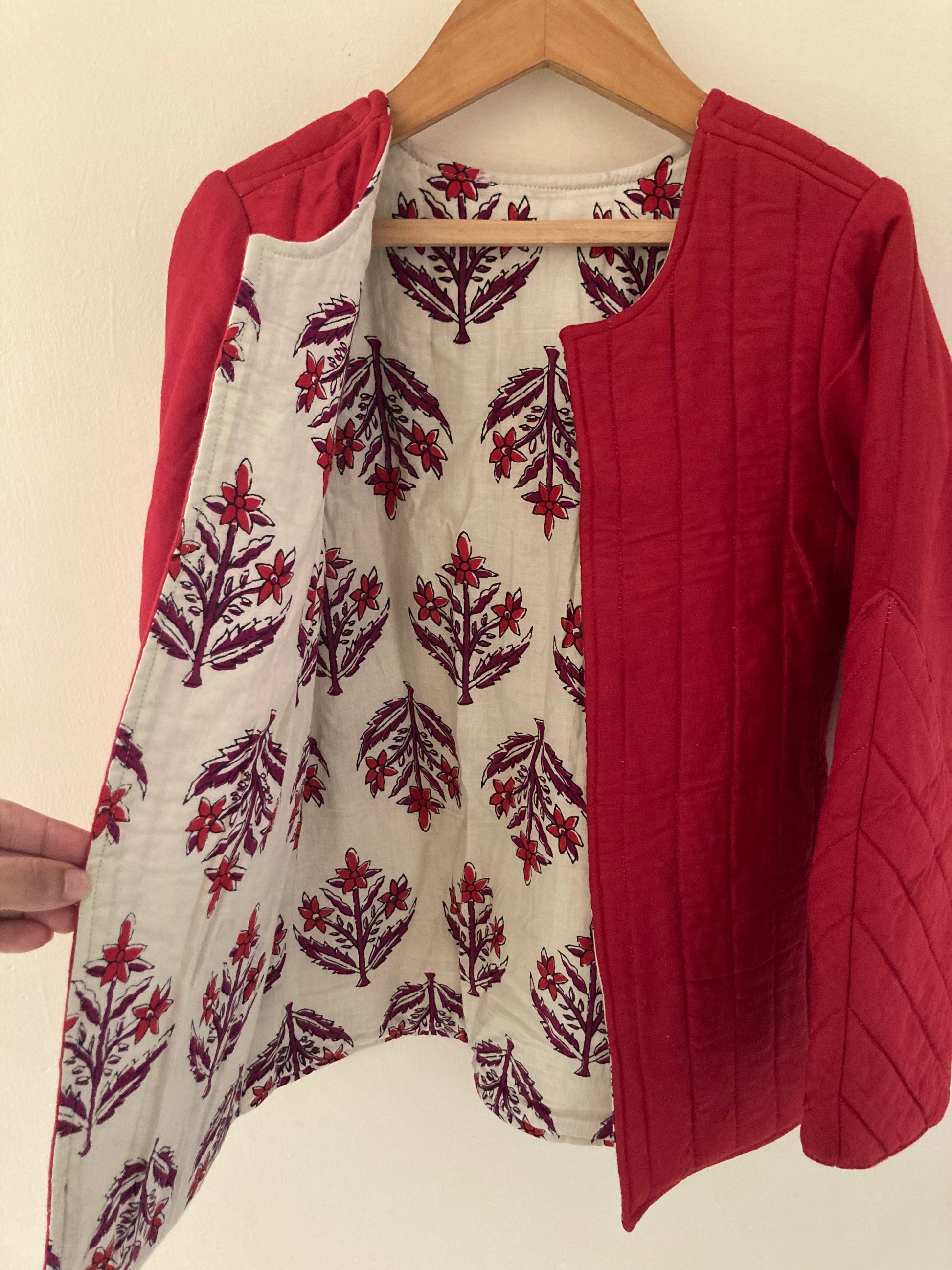 Expertly crafted from premium 100% quilted cotton, this reversible jacket offers versatile styling for every occasion. Available in children's sizes 1Y–10Y and adult sizes XS–XXL, each piece is handmade with meticulous attention to detail. The lining fabric will be assorted in the same aesthetics, i.e., blockprinted in similar colors.