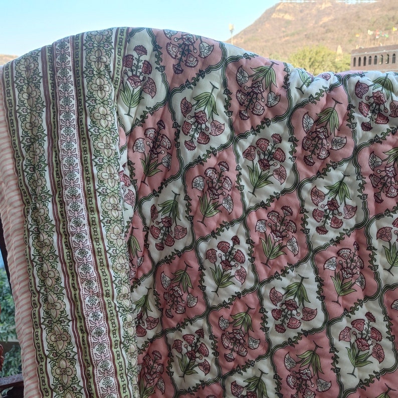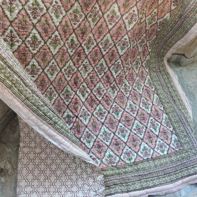 Philomila (Baby Pink) - 100% Soft Cotton Quilt/Blanket- Handcrafted in Jaipur